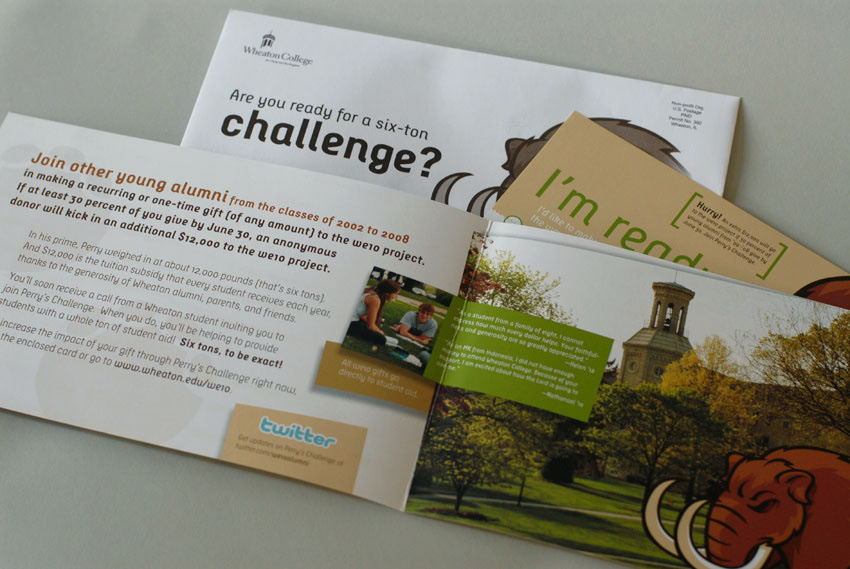 This integrated campaign used email, twitter, and direct mail to challenge young alumni to participate. The twitter integration in 2009 opened a new door to communicate with alumni.